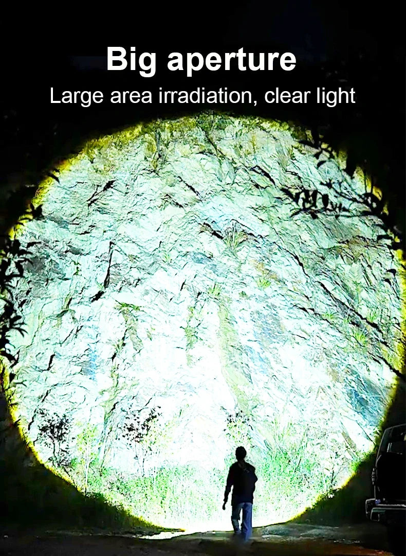 With advanced LED technology and precision optics, this flashlight projects a focused beam up to 3000 meters, allowing you to clearly see objects miles away — perfect for outdoor adventures, work, or emergencies.